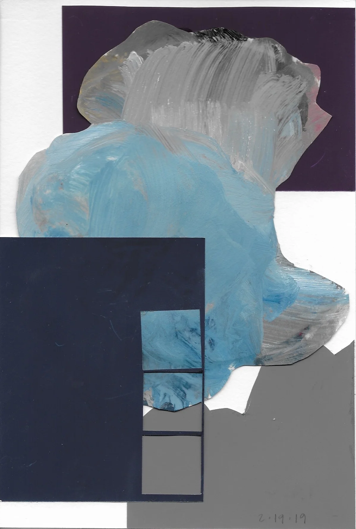 Mixed media, oil and acrylic palette fragments and Color Aid paper on watercolor paper, 6” x 9”